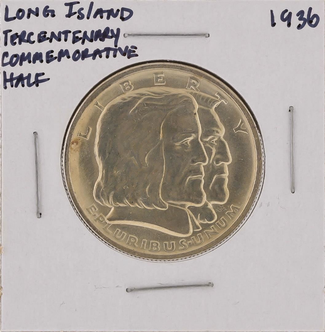 One 1936 Long Island Tercentenary Commemorative Half Dollar Coin.
