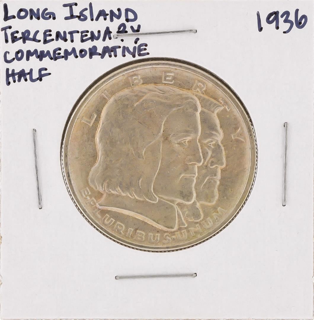 One 1936 Long Island Tercentenary Commemorative Half Dollar Coin.