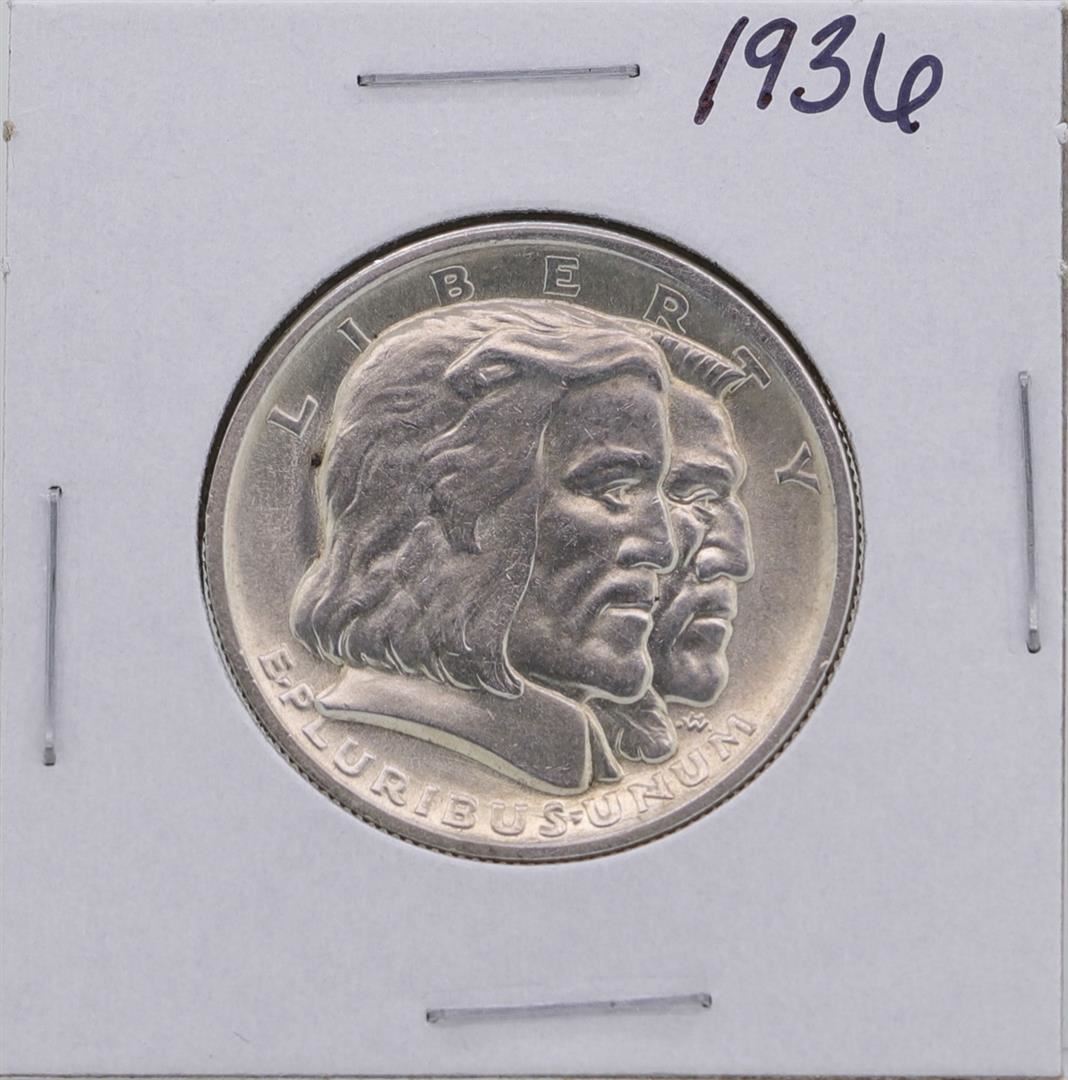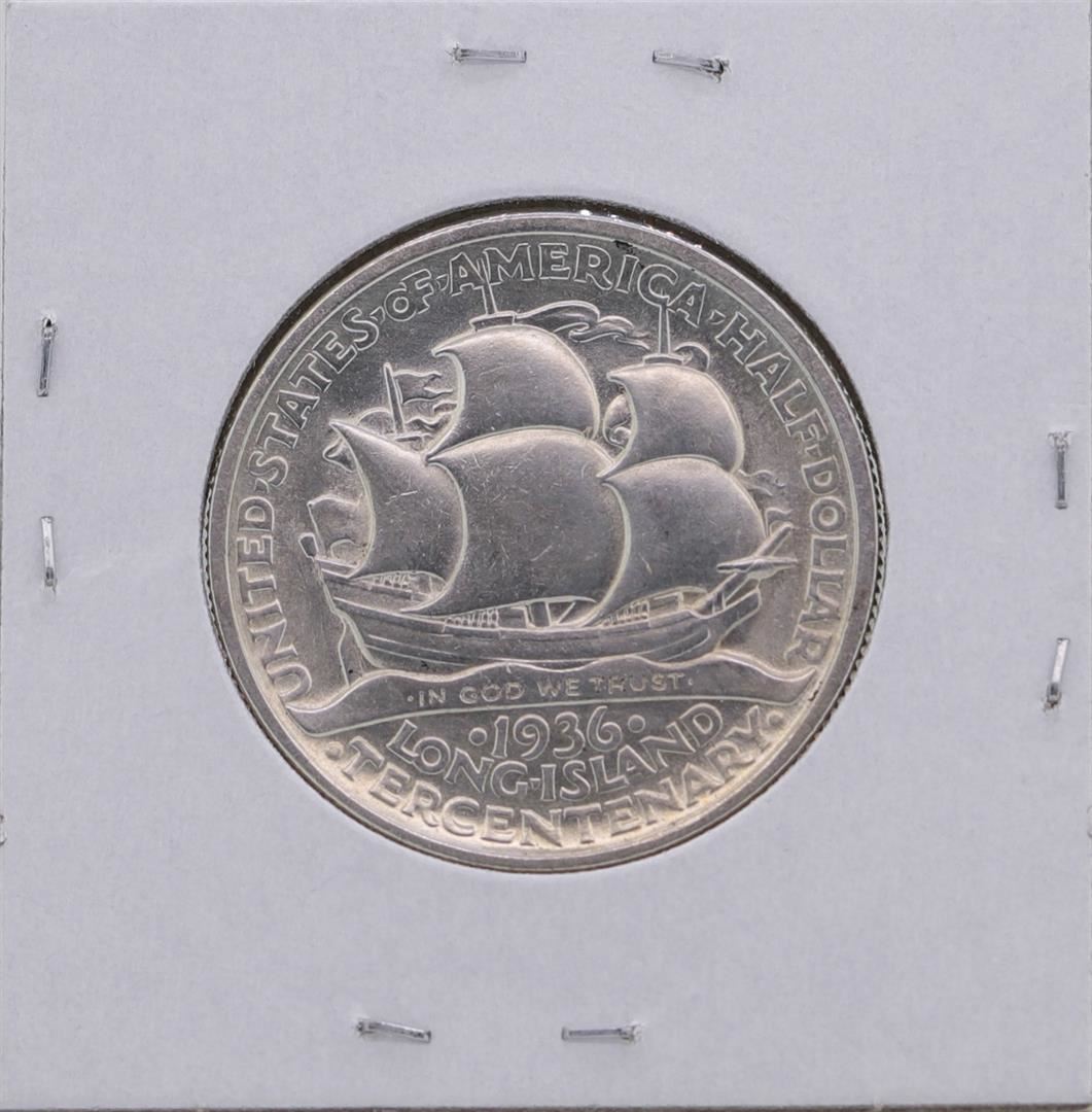 One 1936 Long Island Tercentenary Commemorative Half Dollar Coin.