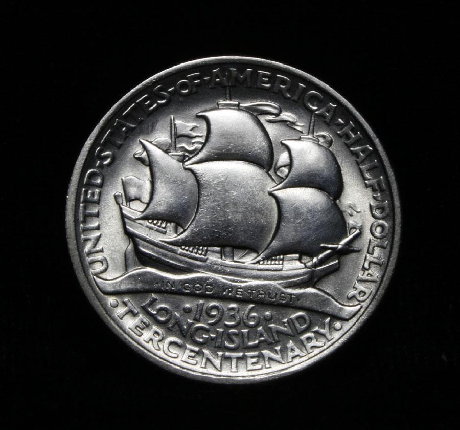 A Beautiful Blast White example with a pleasing appearance. The Long Island Commemorative Celebrates the 300th Anniversary of the Settling of Long Island by the Dutch. When examining a Long Island Commemorative the points to check for wear include the settler’s cheekbone and the ship’s mainsail (the one at center). Coin World's Coin Values lists ms64 at $135 and The Wholesale Greysheet lists ms64 at $80. Estimated Value $115