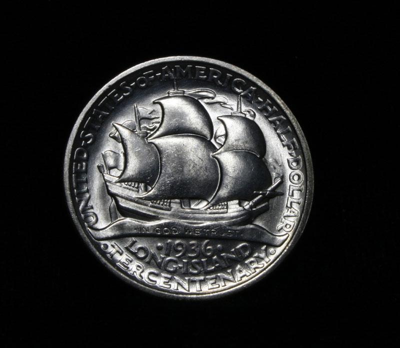 A Beautiful Blast White example with a pleasing appearance. The Long Island Commemorative Celebrates the 300th Anniversary of the Settling of Long Island by the Dutch. When examining a Long Island Commemorative the points to check for wear include the settler’s cheekbone and the ship’s mainsail (the one at center). Coin World's Coin Values lists ms64 at $135 and The Wholesale Greysheet lists ms64 at $80. Estimated Value $100