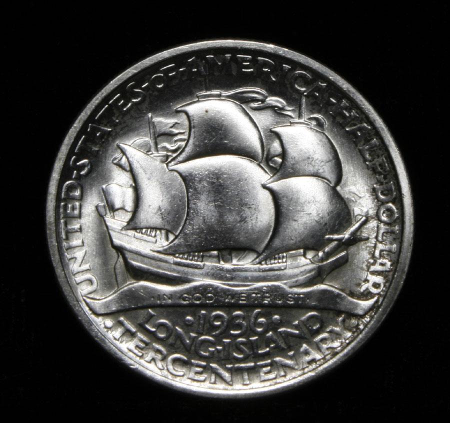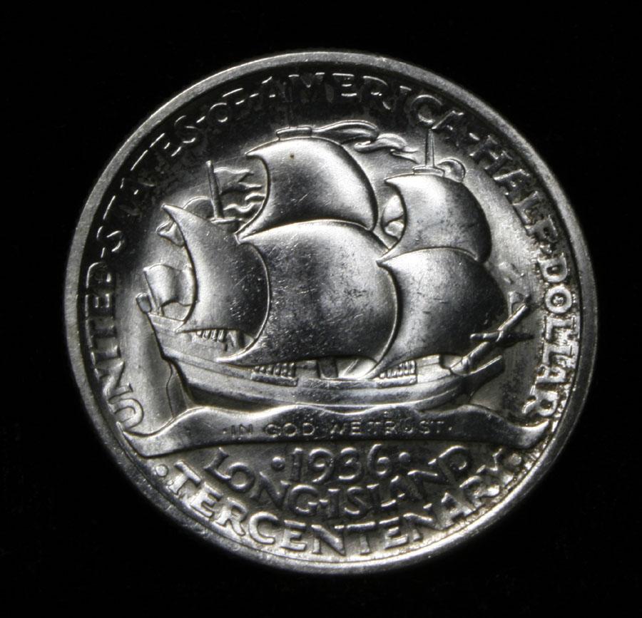 A nice Choice Uncirculated Example. The Long Island Commemorative Celebrates the 300th Anniversary of the Settling of Long Island by the Dutch. When examining a Long Island Commemorative the points to check for wear include the settler’s cheekbone and the ship’s mainsail (the one at center). Coin World's Coin Values lists ms64 as $135. The Wholesale Greysheet Value in ms64 is $80. Estimated Value $100