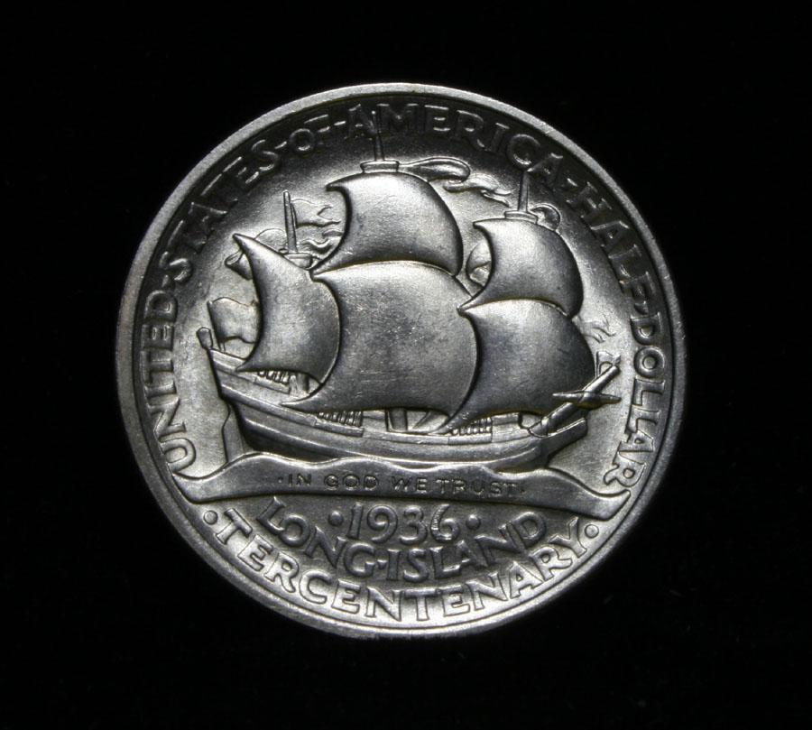 A beautiful blast white example with a very pleasing appearance and great luster. The Long Island Commemorative Celebrates the 300th Anniversary of the Settling of Long Island by the Dutch. When examining a Long Island Commemorative the points to check for wear include the settler’s cheekbone and the ship’s mainsail (the one at center).Coin World's Coin Values lists ms65 as $400. The Wholesale Greysheet Value in ms65 is $275. Estimated Value $300