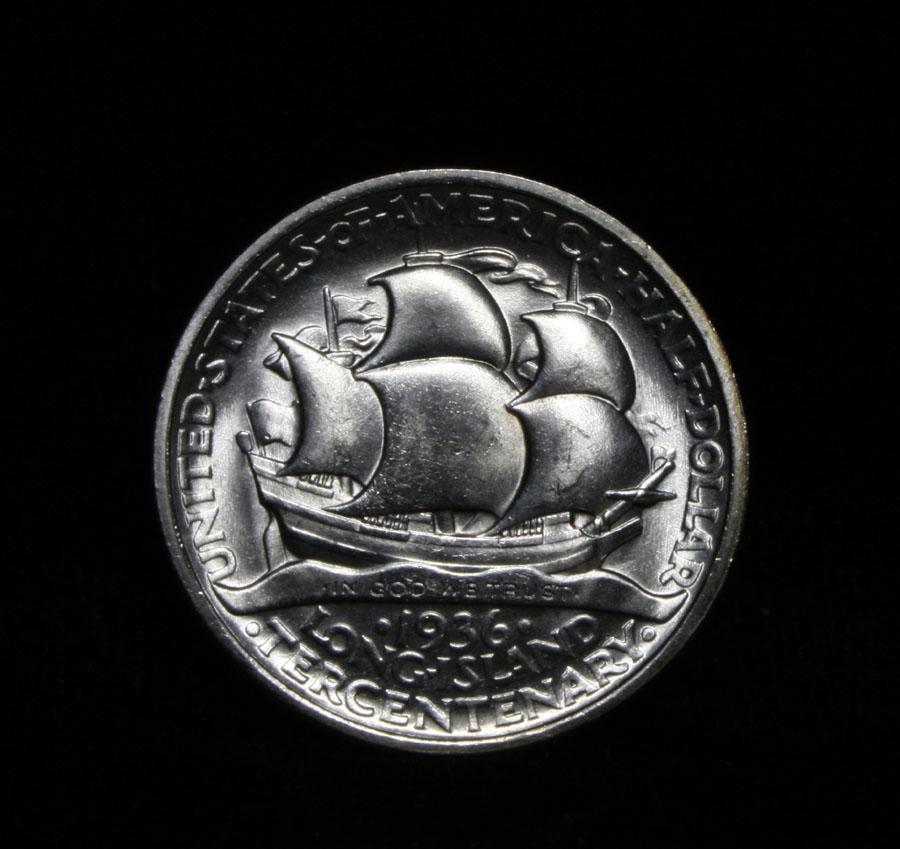 A beautiful blast white example with great eye appeal. The Long Island Commemorative Celebrates the 300th Anniversary of the Settling of Long Island by the Dutch. When examining a Long Island Commemorative the points to check for wear include the settler’s cheekbone and the ship’s mainsail (the one at center).Coin World's Coin Values lists ms65 as $400. The Wholesale Greysheet Value in ms65 is $275. Estimated Value $300