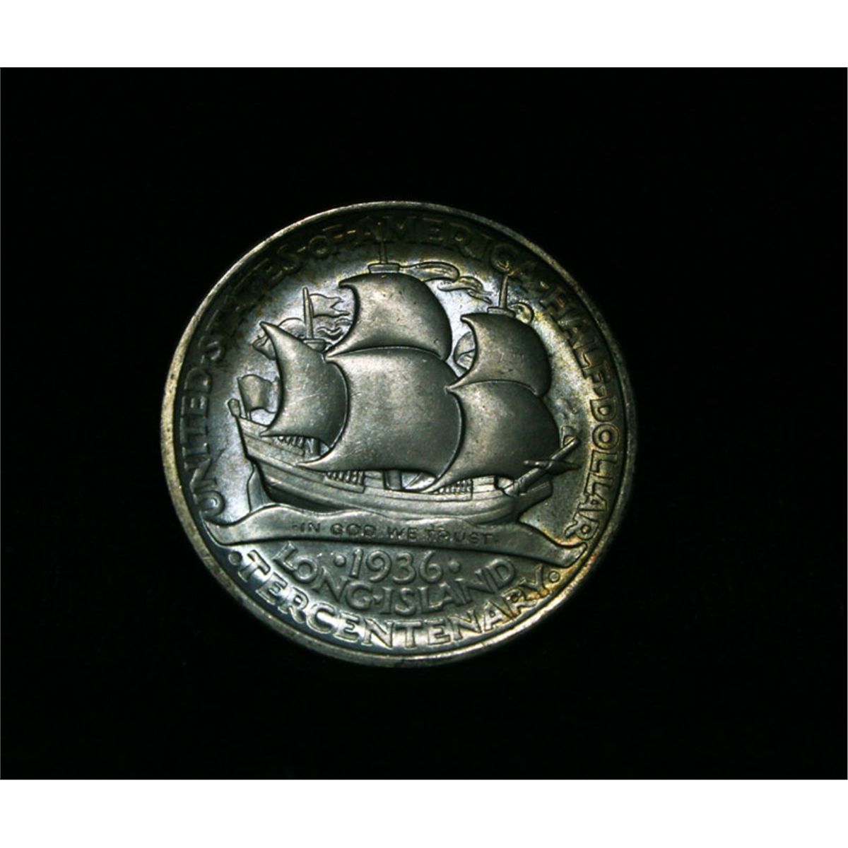 A beautiful lightly toned example with a very pleasing pastel toned reverse. I will offer my personal buy back guarantee, that this coin is all original and will not come back Ungradeable by any major grading service. The Long Island Commemorative Celebrates the 300th Anniversary of the Settling of Long Island by the Dutch. When examining a Long Island Commemorative the points to check for wear include the settler’s cheekbone and the ship’s mainsail (the one at center).Coin World's Coin Values lists ms65 as $400. The Wholesale Greysheet Value in ms65 is $275. Estimated Value $300