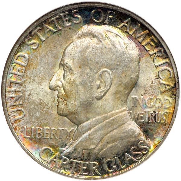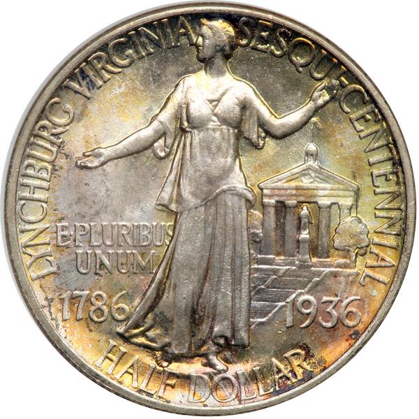 1936 Lynchburg Half Dollar. NGC graded MS-67 CAC Approved. Stunning delicate iridescent toning on both sides. A Premium Quality coin that deserves a premium bid. Included is the original printed cardboard holder and mailing envelope (PCGS # 9324) .