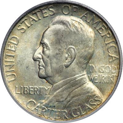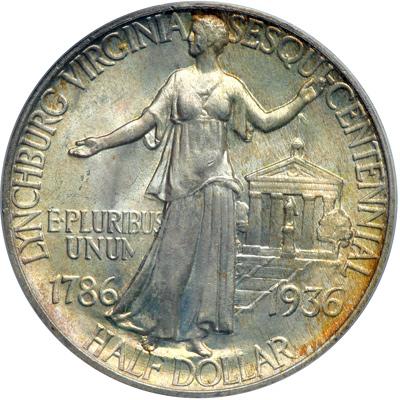 1936 Lynchburg Half Dollar. PCGS graded MS-67. Delicate golden toning. Velvety to satin-like fields almost stagger under the weight of its superb luster. Pop 55; none finer (PCGS # 9324) .