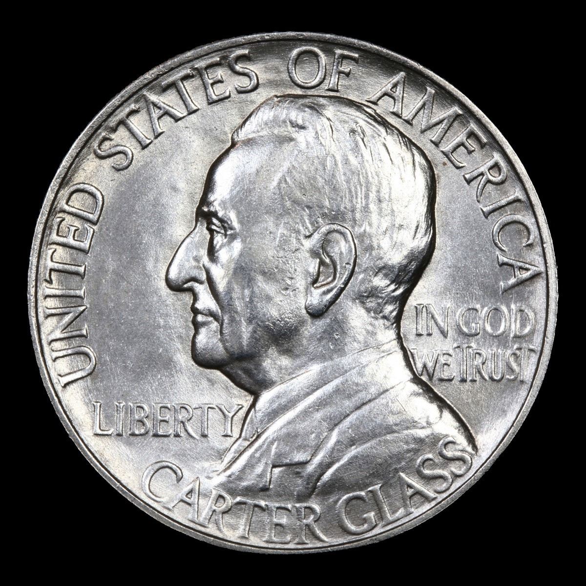 1936 Lynchburg . Great Gem Example Old Commem Half Dollar 50c Grades GEM Unc. The Commemorative was Struck Honoring the Sesquicentennial, or 150th Anniversary of Lynchburg, Virginia. This Issue is Often Found Not Fully Struck, the Highpoints of its Design looking Grainy as the result of Planchet’s Natural Texture still being in evidence. By Not Filling the Dies, this Texture was left intact. Areas in which to look for weakness are Liberty’s Head and Her Thigh, near the Motto 'E PLURIBUS UNUM'. Wear, if any, will First Appear on the Senator’s Hair Above His Ear, also on Liberty’s Head and Chest.