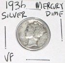 1936 MERCURY SILVER DIME *NICE EARLY VERY FINE GRADE SILVER COIN*!! DIME CAME OUT OF SAFE!! ***Coin, Currency & All Items Listed in this auction - Grades, Conditions and Values are not Safe Deposit Coins LLC Responsibilty. Grades, Condition and Values are determined by Consigner(s) & Buyers ONLY***
