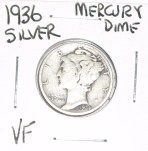 1936 MERCURY SILVER DIME *NICE VERY FINE GRADE* DIME CAME OUT OF SAFE!! ***Coin, Currency & All Items Listed in this auction - Grades, Conditions and Values are not Safe Deposit Coins LLC Responsibilty. Grades, Condition and Values are determined by Consigner(s) & Buyers ONLY