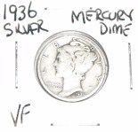 1936 MERCURY SILVER DIME *NICE VERY FINE GRADE* DIME CAME OUT OF SAFE!! ***Coin, Currency & All Items Listed in this auction - Grades, Conditions and Values are not Safe Deposit Coins LLC Responsibilty. Grades, Condition and Values are determined by Consigner(s) & Buyers ONLY