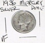 1936 MERCURY SILVER DIME *NICE VERY FINE GRADE*!! DIME CAME OUT OF SAFE!! ***Coin, Currency & All Items Listed in this auction - Grades, Conditions and Values are not Safe Deposit Coins LLC Responsibilty. Grades, Condition and Values are determined by Consigner(s) & Buyers ONLY***