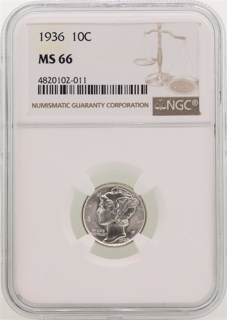 One 1936 Mercury Dime Coin NGC MS66. NGC Certified.