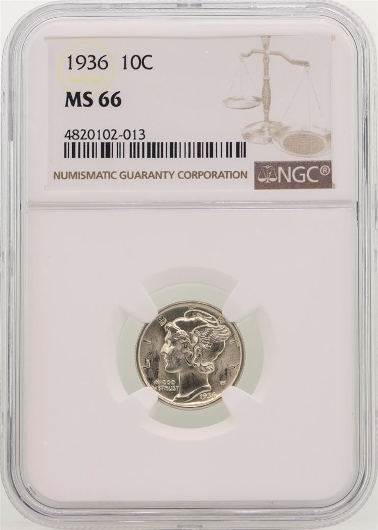 One 1936 Mercury Dime Coin NGC MS66. NGC Certified.