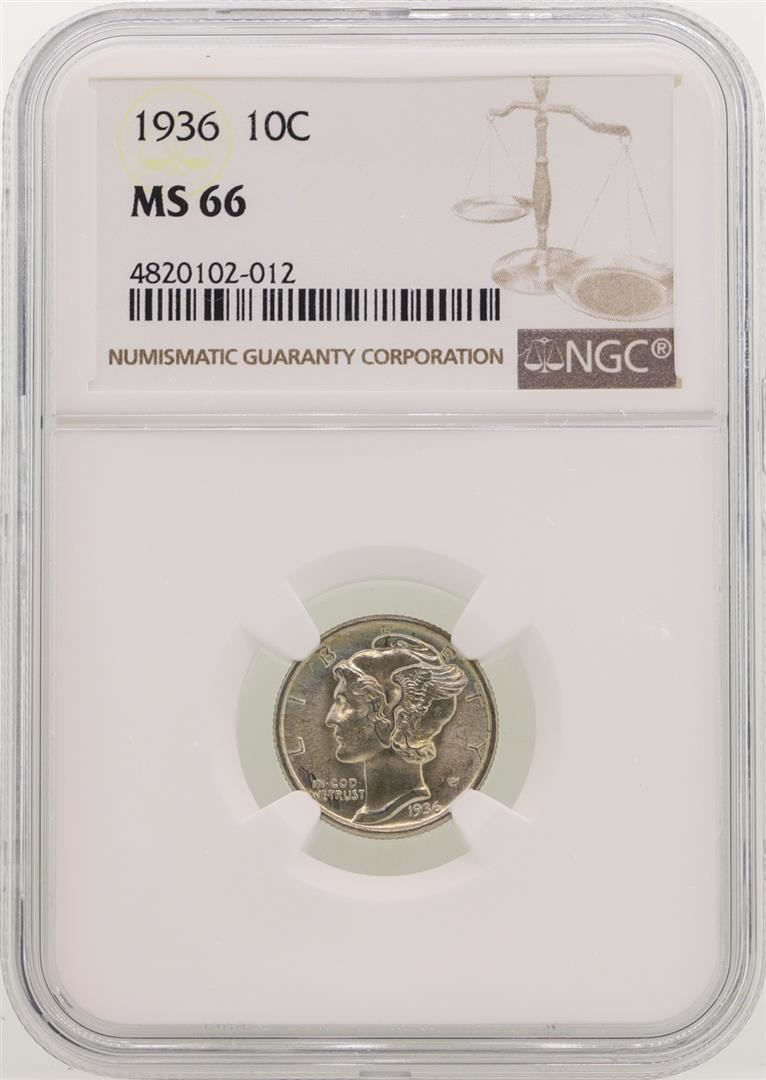 One 1936 Mercury Dime Coin NGC MS66. NGC Certified.