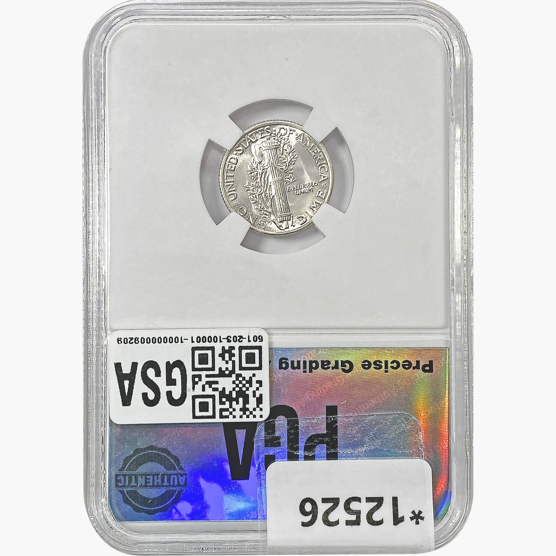 COINS AND CURRENCY LISTED IN GSA’S CATALOG AS GRADED AND ENCAPSULATED BY PCGS, NGC, ANACS, ICG, PCGS CURRENCY, PMG, PCGS BANKNOTE GRADING, CMC OR ANY OTHER THIRD-PARTY GRADING SERVICE ARE LIKEWISE SOLD “AS-IS” EXCEPT AS EXPRESSLY SET FORTH HEREIN. ALL THIRD-PARTY GRADING SERVICE GUARANTEES, INCLUDING AUTHENTICITY, ARE THE SOLE RESPONSIBILITY OF THE THIRD-PARTY GRADING SERVICE AND NOT WARRANTIES OR GUARANTEES OF GSA. BIDDERS SHOULD CONTACT THESE THIRD-PARTY GRADING SERVICES DIRECTLY WITH RESPECT TO ANY CLAIMS OR QUESTIONS THEY MAY HAVE CONCERNING THEIR GUARANTEES AND WARRANTIES. BIDDERS ACKNOWLEDGE AND AGREE THAT AUCTIONEER IS NOT BOUND BY OR LIABLE FOR ANY OPINION OR CERTIFICATION BY ANY THIRD-PARTY GRADING SERVICE. REMOVAL OF A PRODUCT FROM ITS PROTECTIVE CASING OR HOLDER OR ALTERATION OF ANY COIN HOLDER WAIVES ALL RIGHTS CONCERNING THE PRODUCT CONTAINED THEREIN.