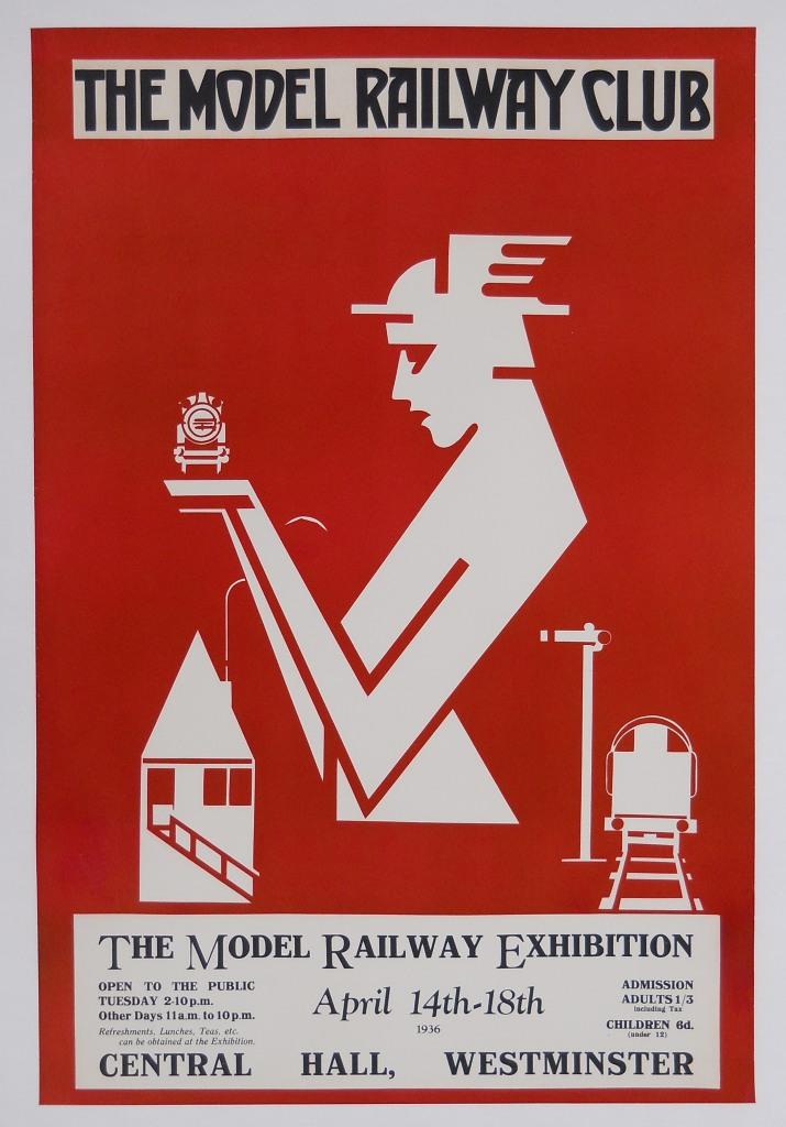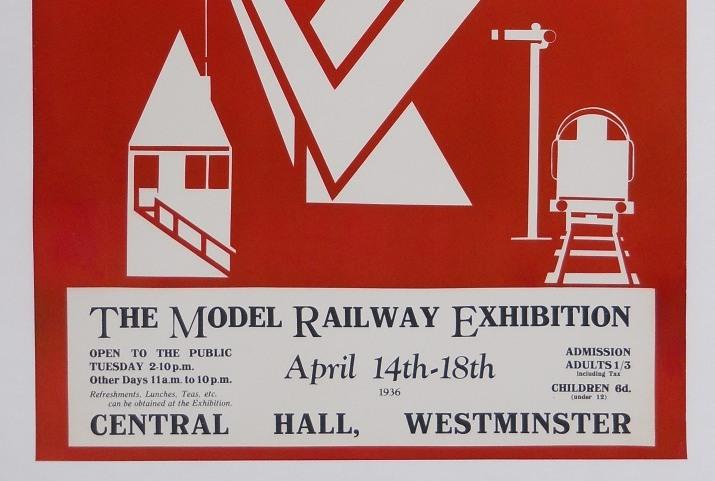 This is a 1936 vintage poster for the Model Railway Club Exhibition at the Central Hall of Westminster in England. It has a great deco look to it! The poster is 20-3/8 inches x 30-1/4 inches; the linen it is mounted on is 23-1/4 inches x 33-1/2 inches.