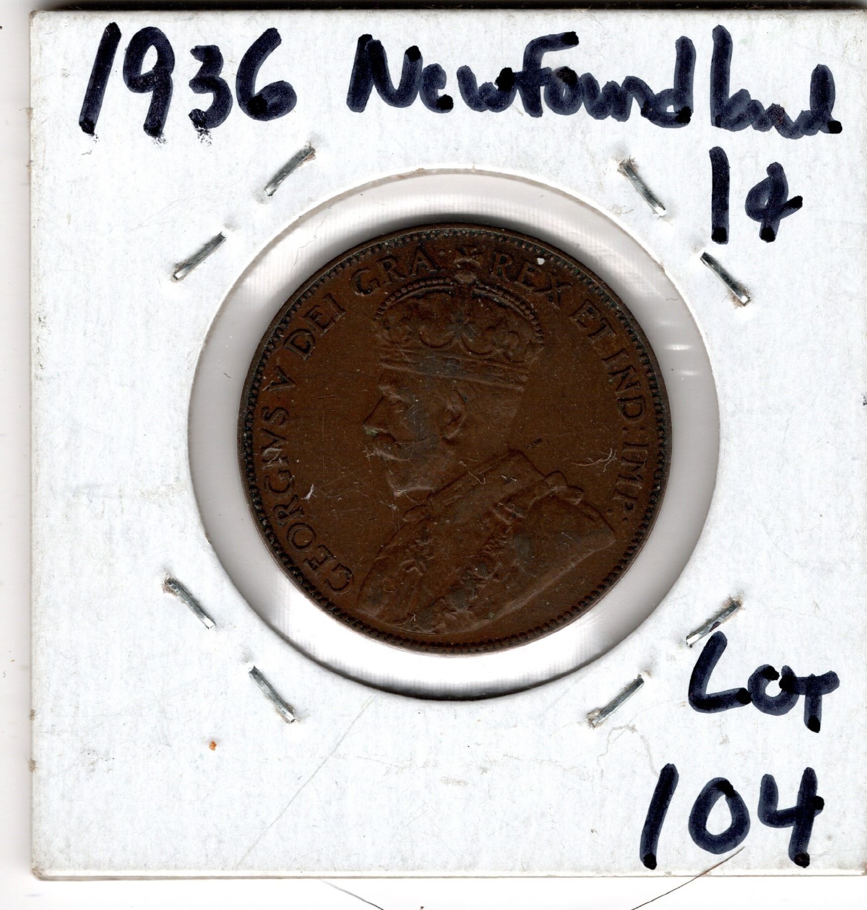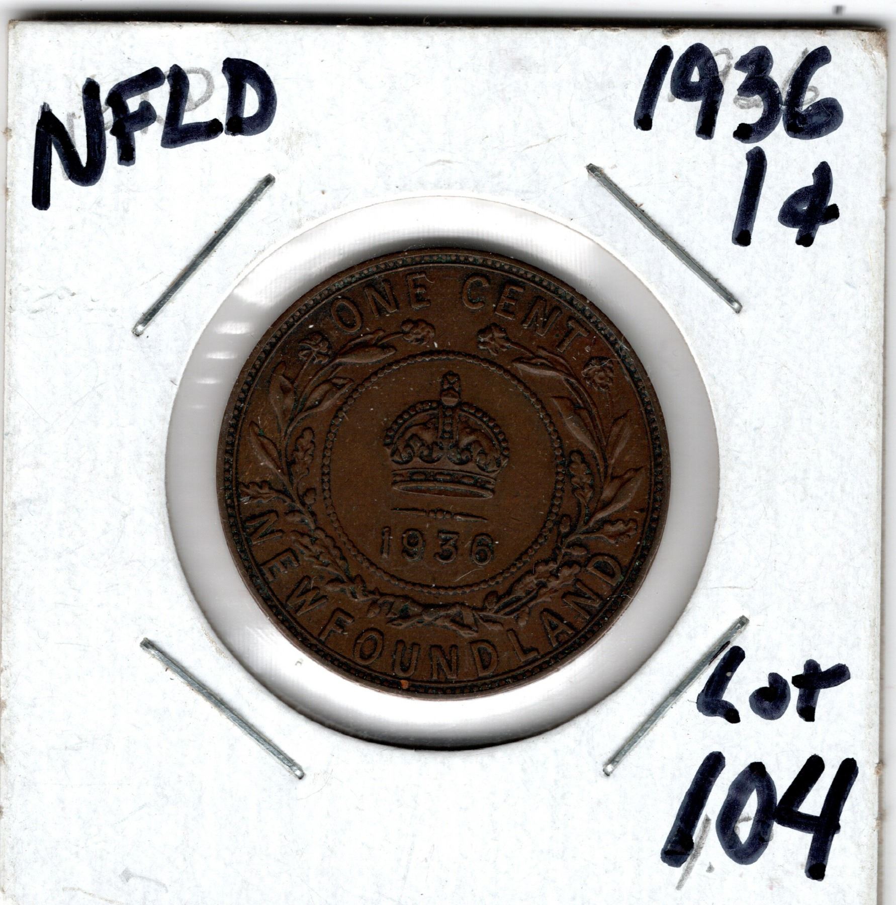 1936 NEWFOUNDLAND LARGE CENT VF30
