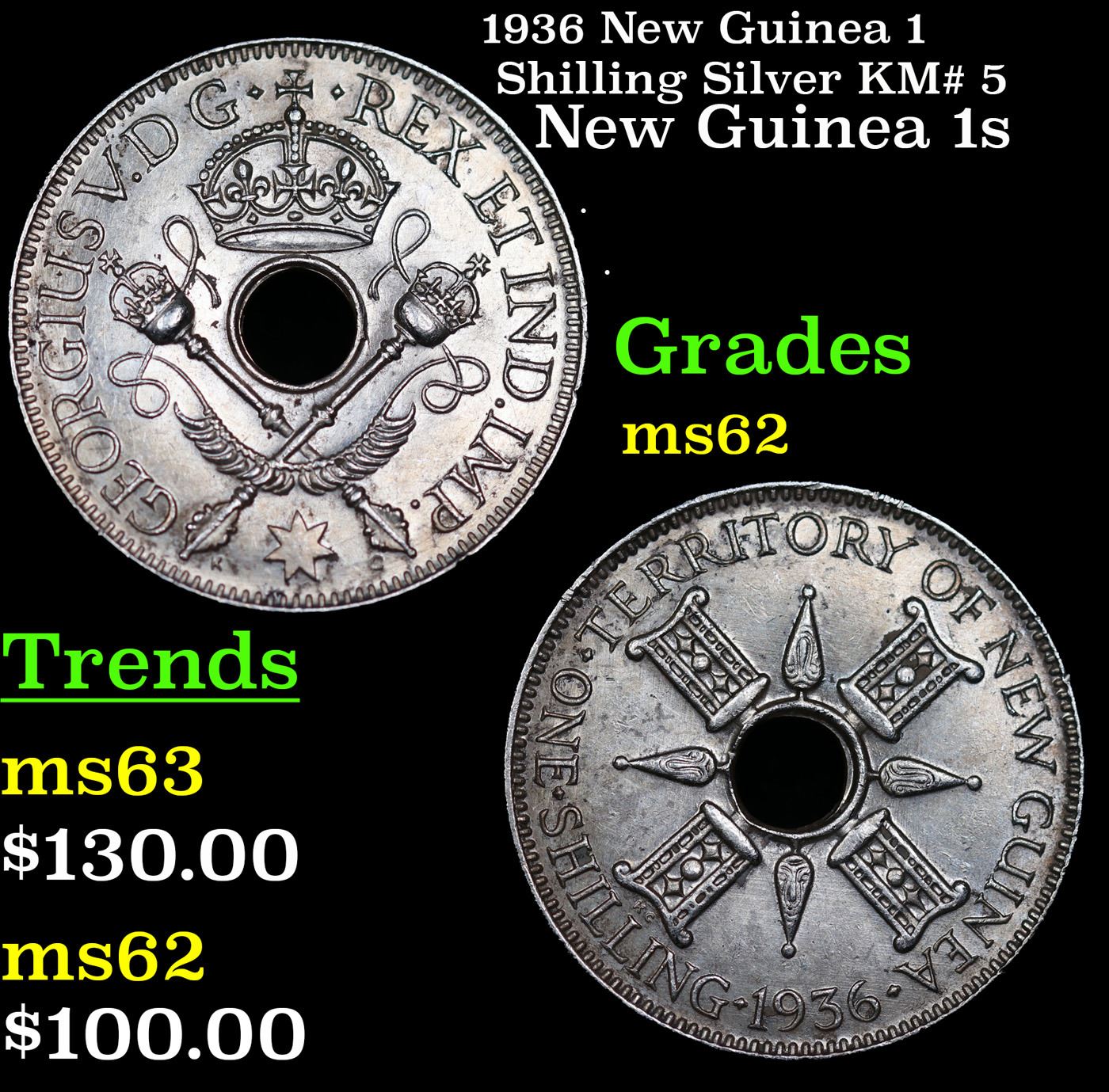 1936 New Guinea 1 Shilling Silver KM# 5 Grades Select Unc.