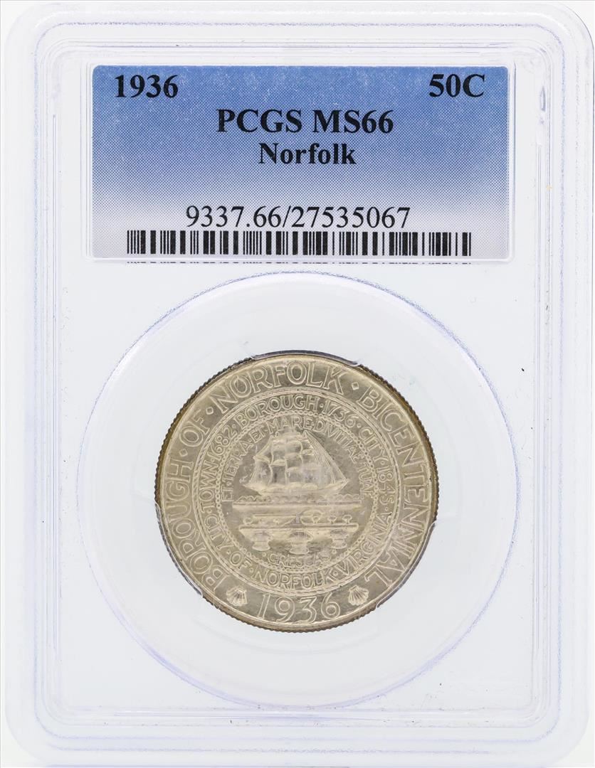 One 1936 Norfolk Commemorative Half Dollar Coin PCGS MS66. PCGS Graded.
