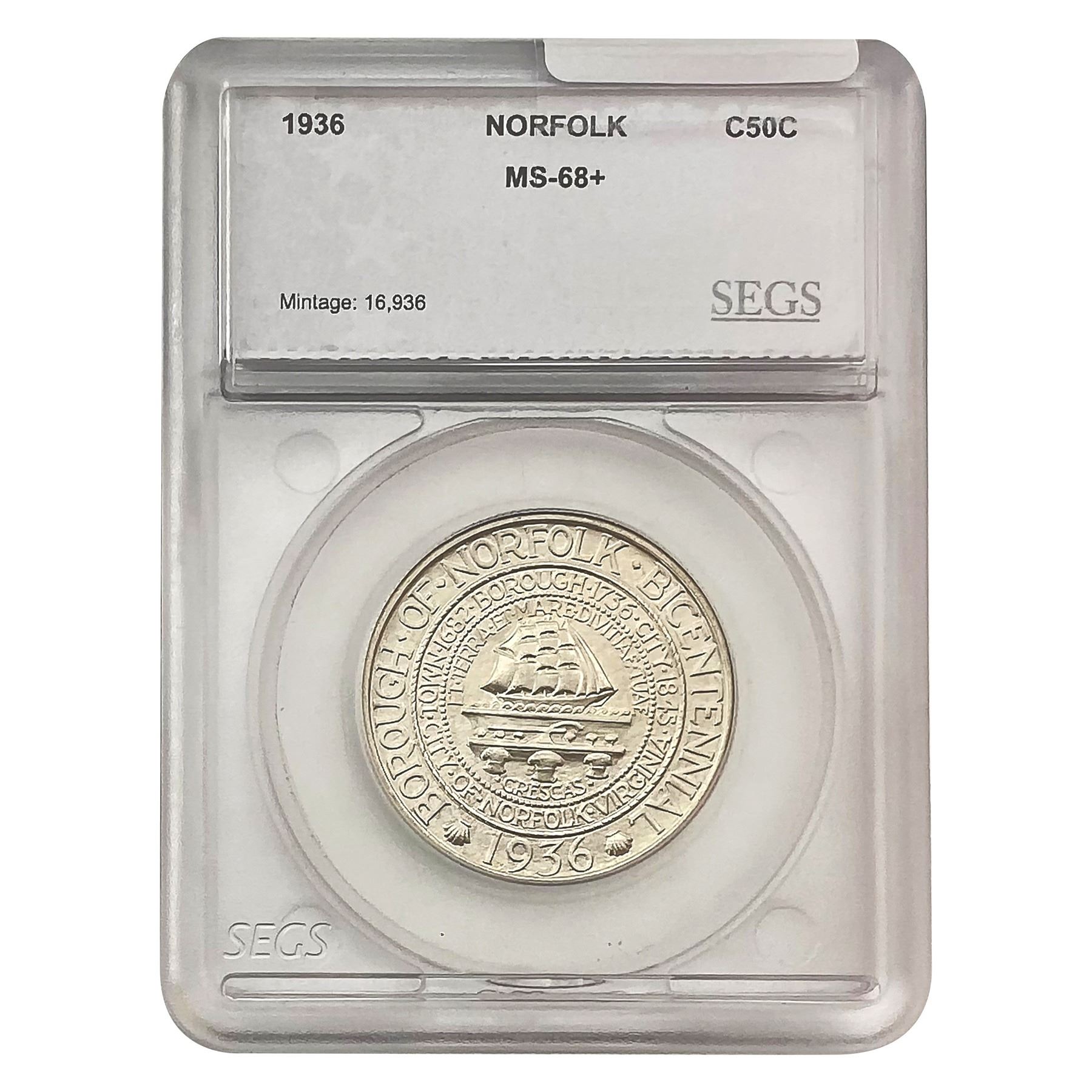 1936 Norfolk Half Dollar SEGS MS68+