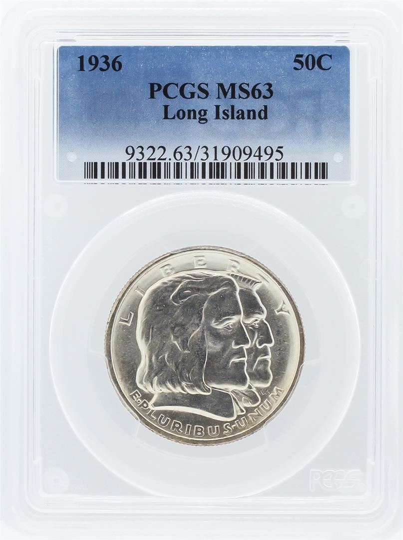 One 1936 PCGS MS63 Long Island Tercentenary Half Dollar. PCGS Certified.