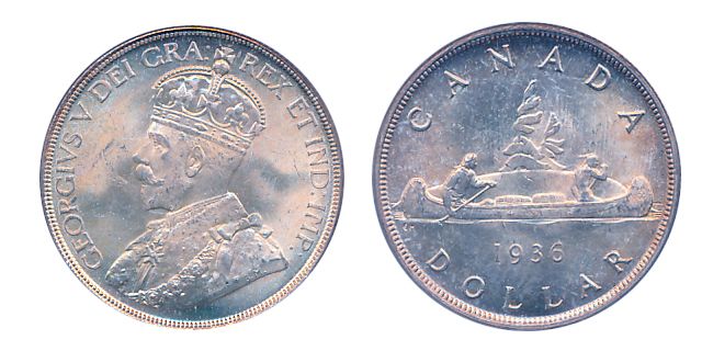 1936. PCGS graded Mint State-65. A gem dollar with light golden iridescent toning.