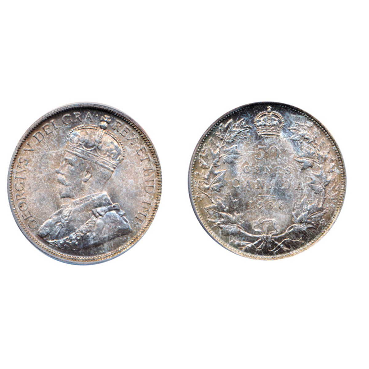 1936. PCGS graded Mint State-65. ‘P.Q.’ eye appeal, with outstanding rainbow toning.
