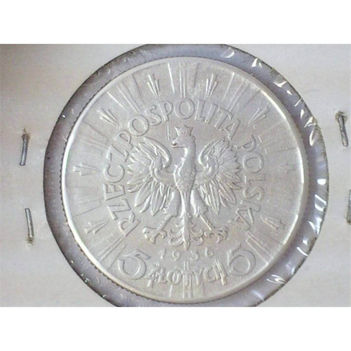 1936 POLAND SILVER 5 ZLOTYCH .2652 OZ. ASW