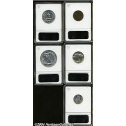 <B>1936 Proof Set PR60 to PR63 ANACS.</B></I> The set includes: <B>Type One Cent--Satin Finish PR63 Red and Brown,</B></I> honey-gold and tan color with a few flyspecks; <B>Type One Nickel--Satin Finish--Corroded--ANACS, Net PR60,</B></I> a spot of charcoal verdigris at 10 o'clock; <B>Dime MS62 Full Bands,</B></I> a brilliant specimen, unobtrusive hairlines on the left obverse field; <B>Quarter PR62,</B></I> well struck, an occasional wispy hairline, only a hint of gold color; and a <B>Half Dollar PR63,</B></I> brilliant, a few faint slide marks on the right obverse field. 5 Coins <BR><BR><B>Important notice:</B> Heritage usually auctions material at the rate of 200-250 lots per hour. On some occasions eBay Live bid software or the Internet may not be able to keep up with the pace of the auction. We recommend placing a realistic absentee bid now as insurance to avoid disappointment. Occasionally the auctioneer may eliminate or reject an eBay Live bid, and the auctioneer may also reopen a lot after the close of the eBay live bidding (usually because we missed an audience bid), and may reject your bid even if it shows you as the winning bidder. By bidding via eBay Live, you agree that Heritage may award the lot to another bidder at its sole discretion under the circumstances described above or any other reasonable circumstances. Since eBay bids are not shown to us until we open the lot on the floor, we treat those bids just like floor bids. In most cases the floor responds before the eBay bid is presented to us, due to Internet lag time, so for consistency we have made it a policy that floor bids are always considered first over tie eBay live bids. Also please note that all Heritage lots purchased through eBay Live carry a 20% Buyer's Premium. Please make sure you read the Terms and Conditions before you bid. </span></font></tr></table></td></tr></table>
