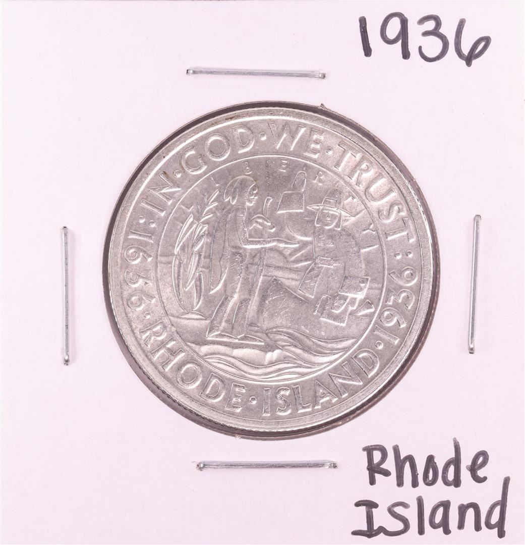 One 1936 Rhode Island Commemorative Half Dollar Coin.