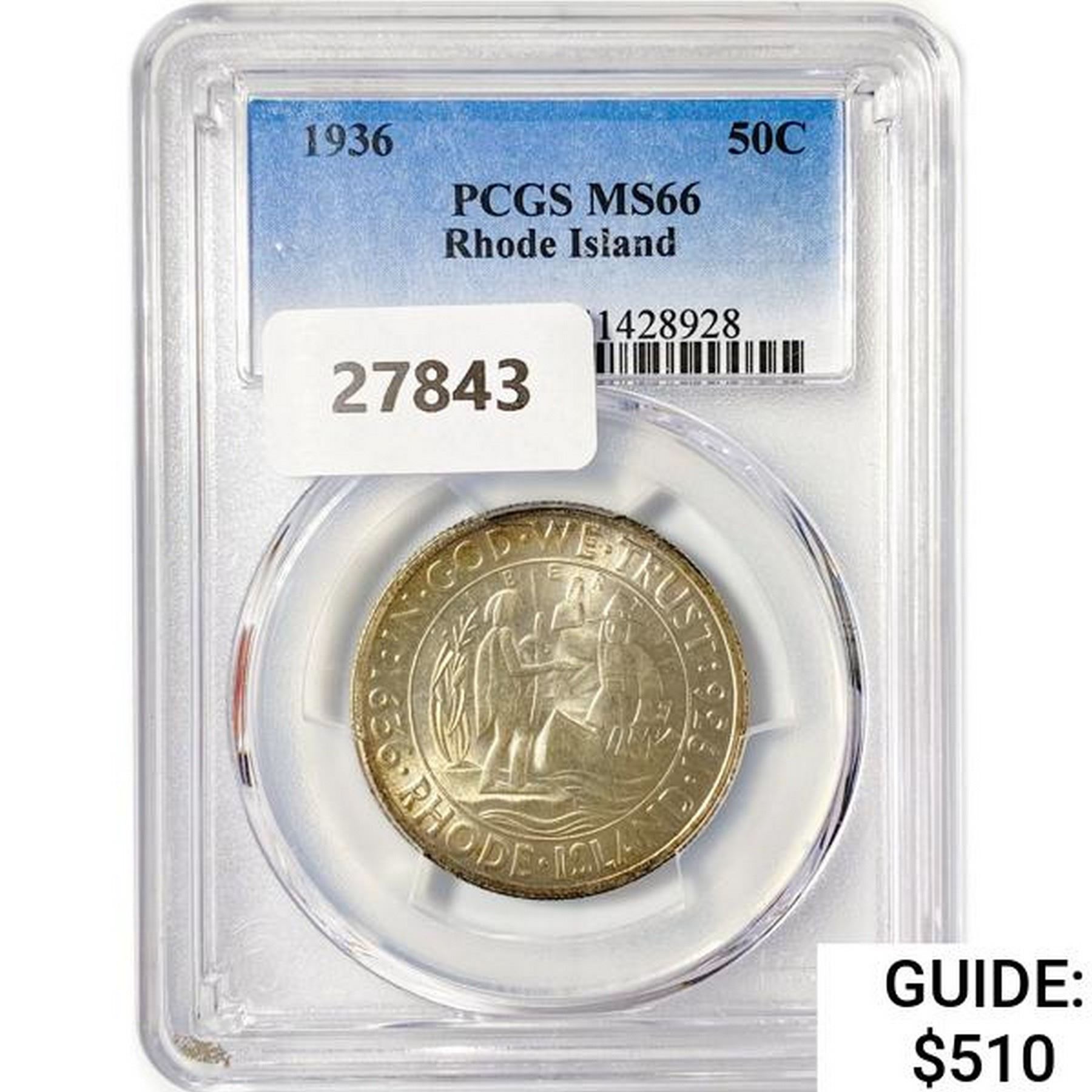 1936 Rhode Island Half Dollar PCGS MS66