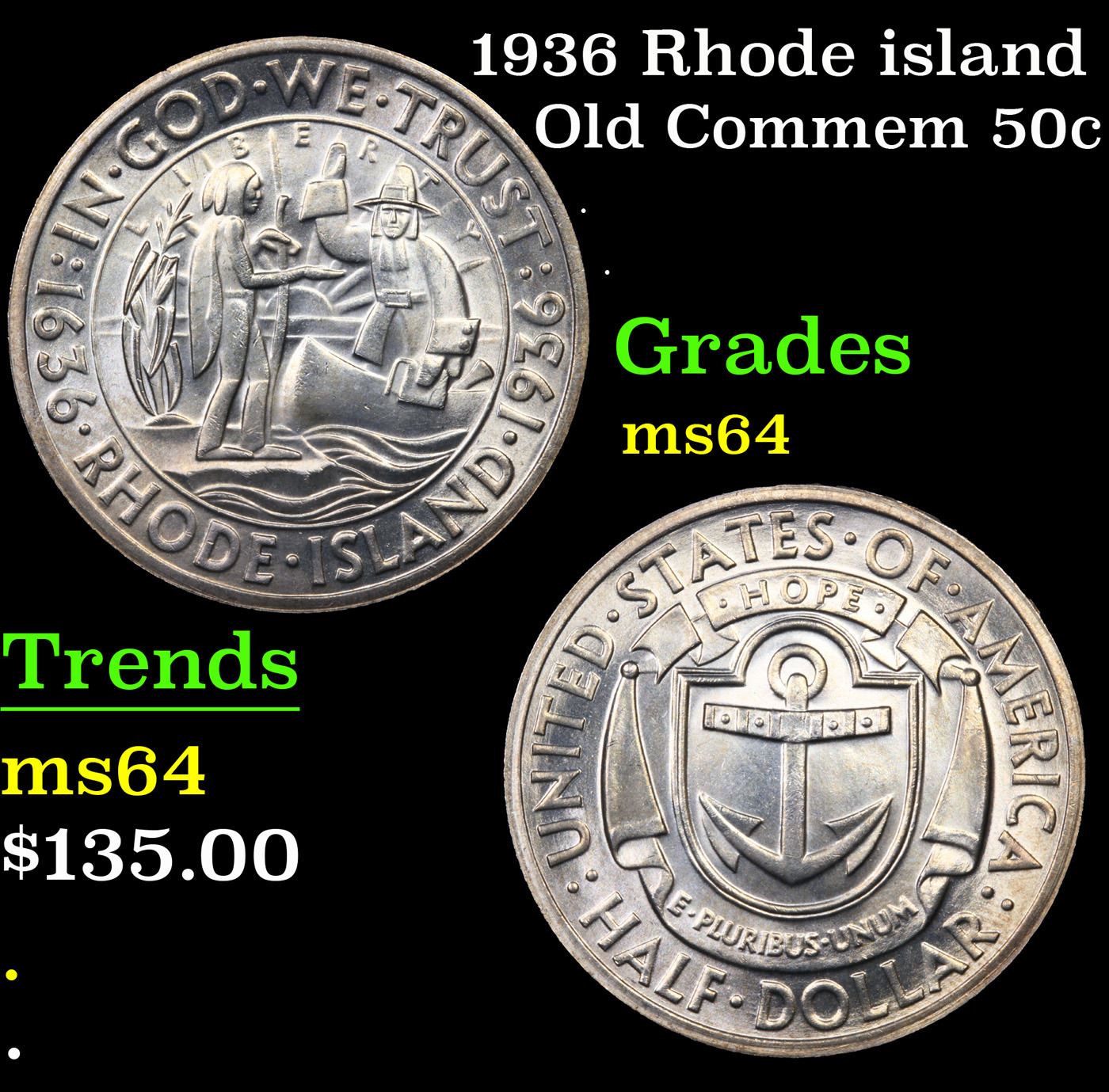 1936 Rhode island Old Commem Half Dollar 50c Grades Choice Unc.