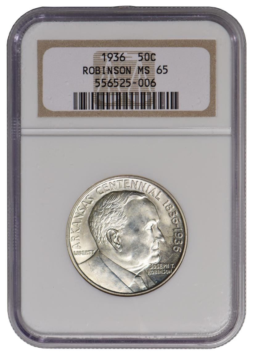 One 1936 Robinson Arkansas Commemorative Half Dollar NGC MS65.