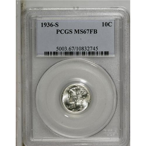 1936-S 10C MS67 Full Bands PCGS. Boldly struck with de