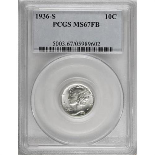 <B>1936-S 10C MS67 Full Bands PCGS.</B></I> A gleaming, essentially untoned, and decisively struck Superb Gem exemplar of this S-mint Depression issue. Immensely appealing with only the tiniest of flaws visible, even under magnification. PCGS has graded only two finer Full Bands pieces (8/07).<BR><BR><B>Coin Engraver:</B> Adolph A. Weinman<BR><BR><b>Shipping:</b> Coins & Currency (<a target="_blank" href="http://www.heritageauctions.com/common/shipping.php">view shipping information</a>)