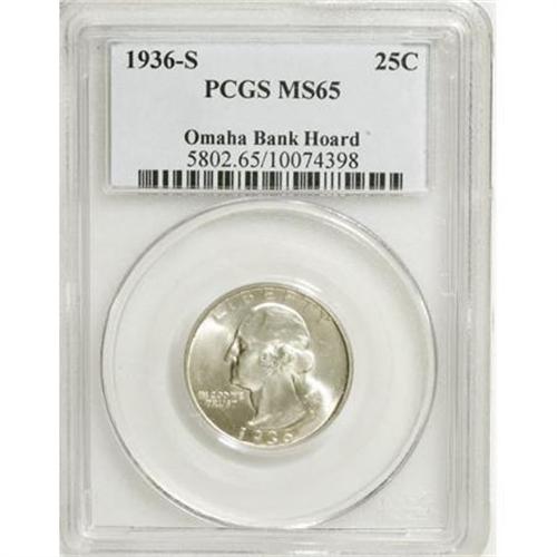 <B>1936-S 25C MS65 PCGS.</B></I> Omaha Bank Hoard. PCGS Population (716/351). NGC Census: (361/161). Mintage: 3,828,000. Numismedia Wsl. Price for NGC/PCGS coin in MS65: $300. (#5802)<BR><BR><B>Coin Engraver:</B> John Flanagan<BR><BR><b>Shipping:</b> Coins & Currency (<a target="_blank" href="http://www.heritageauctions.com/common/shipping.php">view shipping information</a>)