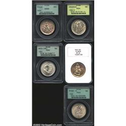 1936-S 50C Arkansas MS64 PCGS, the obverse has a delicate splash of golden color at its center; 1920 Pilgrim MS64 NGC, light golden toning gravitates to the borders; 1936 Rhode Island MS64 PCGS, essentially brilliant; 1934 Texas MS64 PCGS, rich layers of gunmetal and golden-brown toning over each side; and a 1953 Washington-Carver MS64 PCGS, frosty-white and nearly of Gem quality. 5 coins Important notice: We expect to be auctioning lots at the rate of 200-250 per hour. Sometimes eBay Premier live bid software cannot keep up with that pace, so we strongly recommend that you place a realistic proxy bid now as insurance to avoid disappointment. Also please note that all Heritage/CAA lots purchased through eBay Premier carry a 20% Buyer's Premium.
