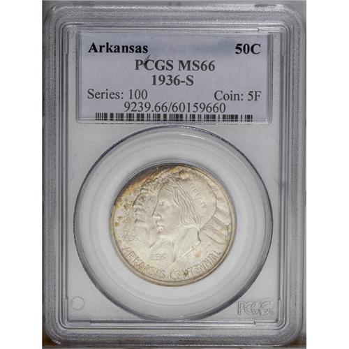 1936-S 50C Arkansas MS66 PCGS. Multicolored iridescenc 1936-S[50C] Arkansas MS66 PCGS.