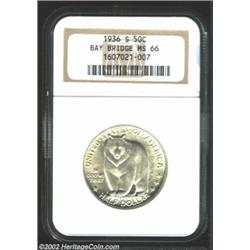 1936-S 50C Bay Bridge MS66 NGC. This is a fully lustrous and nearly untoned Gem with premium quality
