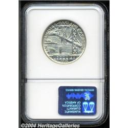 <table><tr><td><table><tr><td>1936-S 50C Bay Bridge MS66 NGC. Untoned with smooth, virtually unblemished surfaces and bright mint luster.From the Keith Ramsey Collection. <BR><BR><B>Important notice:</B> Heritage usually auctions material at the rate of 200-250 lots per hour. On some occasions eBay Live bid software or the Internet may not be able to keep up with the pace of the auction. We recommend placing a realistic absentee bid now as insurance to avoid disappointment. Occasionally the auctioneer may eliminate or reject an eBay Live bid, and the auctioneer may also reopen a lot after the close of the eBay live bidding (usually because we missed an audience bid), and may reject your bid even if it shows you as the winning bidder. By bidding via eBay Live, you agree that Heritage may award the lot to another bidder at its sole discretion under the circumstances described above or any other reasonable circumstances. Since eBay bids are not shown to us until we open the lot on the floor, we treat those bids just like floor bids. In most cases the floor responds before the eBay bid is presented to us, due to Internet lag time, so for consistency we have made it a policy that floor bids are always considered first over tie eBay live bids. Also please note that all Heritage lots purchased through eBay Live carry a 20% Buyer's Premium. Please make sure you read the Terms and Conditions before you bid. <BR><BR><B>IMPORTANT ANNOUNCEMENT ABOUT RESERVES:</B> Heritage now divulges all reserves on its web site 7 days before every auction. If you want to know whether the reserve on this lot has been met, and if not, what the reserve amount is, please visit this lot page on the HeritageCoin.com web site, or email: bid@HeritageGalleries.com </span></font></td></tr></table></td></tr></table>