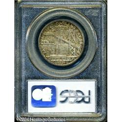 1936-S 50C Bay Bridge MS66 PCGS. Rich golden-brown <B>1936-S 50C Bay Bridge MS66 PCGS.</B></I> Rich golden-brown and sea-green patina bathes this satiny and exquisitely preserved premium Gem. The type commemorates the opening of the Golden Gate Bridge. <BR><BR><B>Important notice:</B> Heritage usually auctions material at the rate of 200-250 lots per hour. On some occasions eBay Live bid software or the Internet may not be able to keep up with the pace of the auction. We recommend placing a realistic absentee bid now as insurance to avoid disappointment. Occasionally the auctioneer may eliminate or reject an eBay Live bid, and the auctioneer may also reopen a lot after the close of the eBay live bidding (usually because we missed an audience bid), and may reject your bid even if it shows you as the winning bidder. By bidding via eBay Live, you agree that Heritage may award the lot to another bidder at its sole discretion under the circumstances described above or any other reasonable circumstances. Since eBay bids are not shown to us until we open the lot on the floor, we treat those bids just like floor bids. In most cases the floor responds before the eBay bid is presented to us, due to Internet lag time, so for consistency we have made it a policy that floor bids are always considered first over tie eBay live bids. Also please note that all Heritage lots purchased through eBay Live carry a 20% Buyer's Premium. Please make sure you read the Terms and Conditions before you bid. This lot is being auctioned in conjunction with a live floor auction by Heritage Galleries & Auctioneers. All final auction and invoice information will be supplied by Heritage Galleries & Auctioneers, and all other information should be considered preliminary. Lot:7856