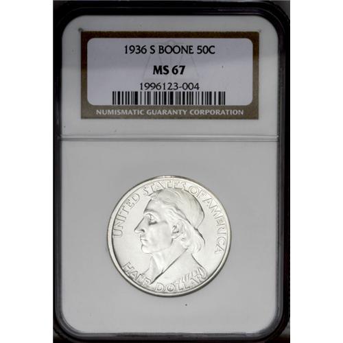 1936-S 50C Boone MS67 NGC. Fully struck and brilliant, 1936-S[50C] Boone MS67 NGC.