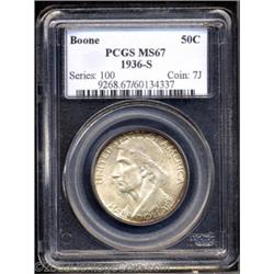 <table><tr><td><TABLE cellSpacing=0 cellPadding=0 width="100%" bgColor=#000000 border=0><TBODY> <TR><TD width="100%"><TABLE cellSpacing=1 cellPadding=3 width="100%" border=0><TBODY><TR><TD width="100%" bgColor=#79735c><FONT face=arial color=#ffffff size=3><B>Description</B> </FONT></TD></TR><TR><TD width="100%" bgColor=#ffffff><FONT face=arial size=2><B>1936-S 50C Boone MS67 PCGS.</B></I> Well struck with creamy, ivory-colored centers and luscious crimson-russet rim toning on the obverse. The reverse seems mark-free, while the obverse shows a few wispy marks. Population: 23 in 67, 0 finer (8/03). </FONT></TD></TR></TBODY></TABLE></TD></TR></TBODY></TABLE><BR><A name=PricesRealized></A><TABLE cellSpacing=0 cellPadding=0 width="100%" bgColor=#000000 border=0><TBODY><TR><TD width="100%"><TABLE cellSpacing=1 cellPadding=3 width="100%" border=0><TBODY><TR><TD width="100%" bgColor=#79735c><A name=PR><FONT face=arial color=#ffffff size=3><B>Previous Prices from Heritage Auctions</B> </FONT></A></TD></TR><TR><TD bgColor=#f6f6ed><TABLE cellSpacing=0 cellPadding=0 width="100%" border=1><TBODY><TR><TD align=middle width="33%"><B>Date</B></TD><TD align=middle width="33%"><B>Service</B></TD><TD align=middle width="33%"><B>Price</B></TD></TR><TR bgColor=whitesmoke><TD width="33%"><B>07/03/2001</B></TD><TD width="33%">PCGS</TD><TD width="33%">$1,700.00</TD></TR><TR bgColor=whitesmoke><TD width="33%"><B>07/03/2001</B></TD><TD width="33%">PCGS</TD><TD width="33%">$1,700.00</TD></TR><TR bgColor=whitesmoke><TD width="33%"><B>11/23/2002</B></TD><TD width="33%">PCGS</TD><TD width="33%">$1,610.00</TD></TR><TR bgColor=whitesmoke><TD width="33%"><B>11/23/2002</B></TD><TD width="33%">PCGS</TD><TD width="33%">$1,610.00</TD></TR><TR bgColor=whitesmoke><TD width="33%"><B>09/28/2002</B></TD><TD width="33%">NGC</TD><TD width="33%">$1,610.00</TD></TR><TR bgColor=whitesmoke><TD width="33%"><B>09/28/2002</B></TD><TD width="33%">NGC</TD><TD width="33%">$1,610.00</TD></TR><TR bgColor=whitesmoke><TD width="33%"><B>02/23/2002</B></TD><TD width="33%">PCGS</TD><TD width="33%">$1,840.00</TD></TR><TR bgColor=whitesmoke><TD width="33%"><B>02/23/2002</B></TD><TD width="33%">PCGS</TD><TD width="33%">$1,840.00</TD></TR><TR bgColor=whitesmoke><TD width="33%"><B>01/12/2002</B></TD><TD width="33%">PCGS</TD><TD width="33%">$1,610.00</TD></TR><TR bgColor=whitesmoke><TD width="33%"><B>01/12/2002</B></TD><TD width="33%">PCGS</TD><TD width="33%">$1,610.00</TD></TR><TR bgColor=whitesmoke><TD width="33%"><B>10/06/2000</B></TD><TD width="33%">PCGS</TD><TD width="33%">$1,006.25</TD></TR><TR bgColor=whitesmoke><TD width="33%"><B>10/06/2000</B></TD><TD width="33%">PCGS</TD><TD width="33%">$1,006.25</TD></TR><TR bgColor=whitesmoke><TD width="33%"><B>08/05/2000</B></TD><TD width="33%">NGC</TD><TD width="33%">$690.00</TD></TR><TR bgColor=whitesmoke><TD width="33%"><B>08/05/2000</B></TD><TD width="33%">NGC</TD><TD width="33%">$690.00</TD></TR><TR bgColor=whitesmoke><TD width="33%"><B>05/05/2000</B></TD><TD width="33%">NGC</TD><TD width="33%">$1,035.00</TD></TR><TR bgColor=whitesmoke><TD width="33%"><B>05/05/2000</B></TD><TD width="33%">NGC</TD><TD width="33%">$1,035.00</TD></TR><TR bgColor=whitesmoke><TD width="33%"><B>11/18/1999</B></TD><TD width="33%">NGC</TD><TD width="33%">$603.75</TD></TR><TR bgColor=whitesmoke><TD width="33%"><B>11/18/1999</B></TD><TD width="33%">NGC</TD><TD width="33%">$603.75</TD></TR><TR bgColor=whitesmoke><TD width="33%"><B>11/18/1999</B></TD><TD width="33%">NGC</TD><TD width="33%">$2,070.00</TD></TR><TR bgColor=whitesmoke><TD width="33%"><B>11/18/1999</B></TD><TD width="33%">NGC</TD><TD width="33%">$2,070.00</TD></TR></TBODY></TABLE></TD></TR><TR><TD bgColor=#ffffff><FONT face=arial size=1 ?>PLEASE NOTE: All prices realized reflect the final hammer price PLUS the buyer's premium in auctions that charge a buyer's premium. Each item has a notation at the top of the listing indicating whether that lot included a buyer's premium. Example: A item that sells with a final hammer price of $100 and a 20% buyer's premium will display with a price realized of $120. All information listed is intended to be as accurate as possible, but errors are possible. Please use this guide carefully and inform us of any inaccuracies. </FONT></TD></TR></TBODY></TABLE></TD></TR></TBODY></TABLE><BR><TABLE cellSpacing=0 cellPadding=0 width="100%" bgColor=#000000 border=0><TBODY><TR><TD width="100%"><TABLE cellSpacing=1 cellPadding=3 width="100%" border=0><TBODY><TR><TD width="100%" bgColor=#79735c colSpan=6><FONT face=arial color=#ffffff size=3><B>Price Guide*</B> </FONT></TD></TR><TR bgColor=#f6f6ed><TD align=middle><B>Grade</B> </TD><TD align=middle><B>Coin World<BR>(Trends)</B> </TD><TD align=middle><B>Numismedia<BR>Retail</B> </TD><TD align=middle><B>Numismedia<BR>Wholesale</B> </TD><TD align=middle><B>Coin<BR>Universe</B> </TD><TD align=middle><B>Heritage<BR>Value Index</B> </TD></TR><TR bgColor=#ffffff><TD align=middle>66</TD><TD align=right>---</TD><TD align=right>$294.00</TD><TD align=right>$235.00</TD><TD align=right>$350.00</TD><TD align=right>$240.00</TD></TR><TR style="FONT-WEIGHT: bold" bgColor=#cccfdd><TD align=middle>67</TD><TD align=right>---</TD><TD align=right>---</TD><TD align=right>$1,005.00</TD><TD align=right>$1,750.00</TD><TD align=right>$1,532.50</TD></TR><TR bgColor=#ffffff><TD align=middle>68</TD><TD align=right>---</TD><TD align=right>---</TD><TD align=right>---</TD><TD align=right>---</TD><TD align=right>---</TD></TR><TR bgColor=#ffffff><TD colSpan=6><FONT size=1>*All information listed is intended to be as accurate as possible, but errors are possible. No item may be returned or refused based on this information which is provided as a service to our customers. You should contact each pricing source directly to determine the accuracy of this information. </FONT></TD></TR></TBODY></TABLE></TD></TR></TBODY></TABLE><BR><TABLE cellSpacing=0 cellPadding=0 width="100%" bgColor=#000000 border=0><TBODY><TR><TD width="100%"><TABLE 