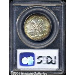 <B>1936-S<50C> Boone MS67 PCGS.</B></I> Sharply struck and seemingly mark-free, with beautiful gleaming luster and equally attractive crimson-russet peripheral toning on both sides. A splendidly preserved Superb Gem, with exquisite visual appeal. Population: 34 in 67, 0 finer (3/04). <BR><BR><B>Important notice:</B> Heritage usually auctions material at the rate of 200-250 lots per hour. On some occasions eBay Live bid software or the Internet may not be able to keep up with the pace of the auction. We recommend placing a realistic absentee bid now as insurance to avoid disappointment. Occasionally the auctioneer may eliminate or reject an eBay Live bid, and the auctioneer may also reopen a lot after the close of the eBay live bidding (usually because we missed an audience bid), and may reject your bid even if it shows you as the winning bidder. By bidding via eBay Live, you agree that Heritage may award the lot to another bidder at its sole discretion under the circumstances described above or any other reasonable circumstances. Since eBay bids are not shown to us until we open the lot on the floor, we treat those bids just like floor bids. In most cases the floor responds before the eBay bid is presented to us, due to Internet lag time, so for consistency we have made it a policy that floor bids are always considered first over tie eBay live bids. Also please note that all Heritage lots purchased through eBay Live carry a 20% Buyer's Premium. Please make sure you read the Terms and Conditions before you bid. </span></font></tr></table></td></tr></table>