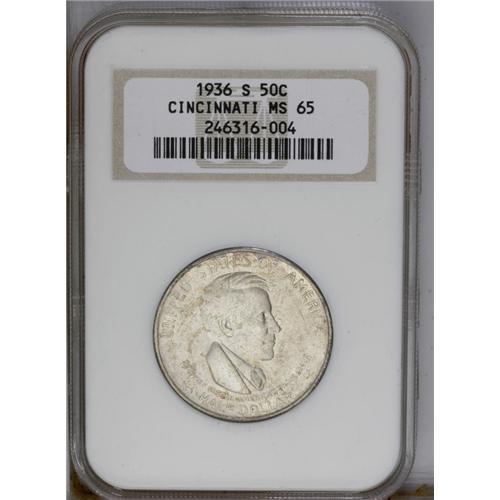 1936-S 50C Cincinnati MS65 NGC. Radiantly lustrous, si
