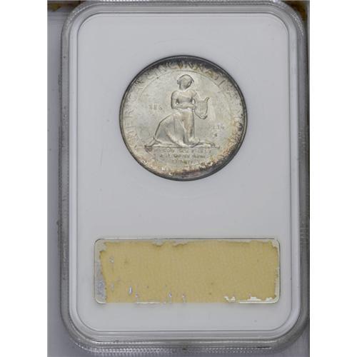 <B>1936-S 50C Cincinnati MS65 NGC.</B></I> Radiantly lustrous, silver-gray surfaces are imbued with traces of olive-green, and display purple and electric-blue toning around portions of the reverse rims. The design elements are sharply struck, and there are no significant marks. NGC has seen only 16 pieces grading higher (1/06).