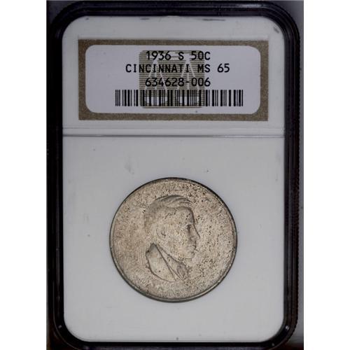 1936-S 50C Cincinnati MS65 NGC. Russet-gray toning on 1936-S[50C] Cincinnati MS65 NGC.