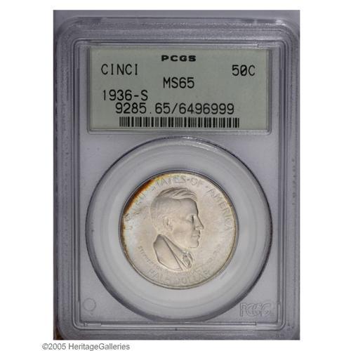 1936-S 50C Cincinnati MS65 PCGS. Fully lustrous surfac 1936-S[50C] Cincinnati MS65 PCGS.