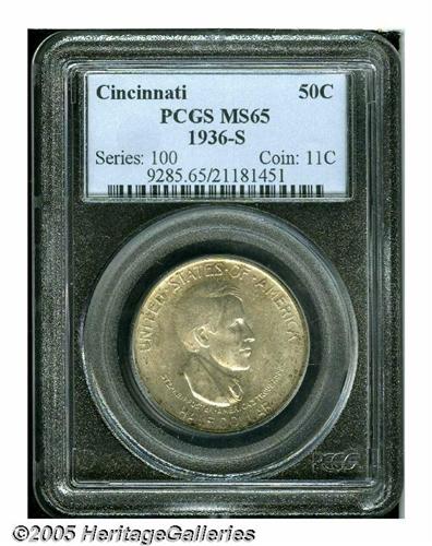 <B>1936-S<50C> Cincinnati MS65 PCGS.</B></I> Light apricot and dove-gray patina, satiny and attractive with a good strike.<BR><I>From The Western Hills Collection.</B></I>